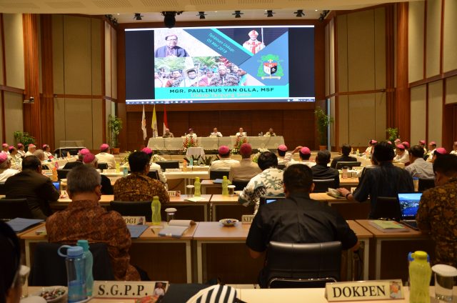 Bandung, dokpenkwi.org – Sidang Sinodal KWI 2018 dimulai dengan ibadat pagi yang dipimpin oleh Uskup Keuskupan Pangkalpinang, Mgr. Adrianus Sunarko OFM. Setelah menyanyikan lagu Indonesia Raya di akhir ibadat, Sidang Sinodal KWI 2018 secara resmi dibuka oleh Ketua Presidium KWI, Mgr. Ignatius Suharyo, Senin (5/11/2018) di Pusat Pastoral Keuskupan Bandung (PPKB). Sidang kali ini memang diselenggarakan secara istimewa di Bandung karena Gedung KWI Cut Meutia sudah dikosongkan untuk kepentingan pembangunan gedung baru.