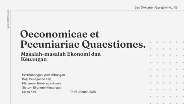 | Deskripsi | Pertimbangan-pertimbangan Bagi Penegasan Etis Mengenai Beberapa Aspek Sistem Ekonomi-Keuangan Masa Kini. Kongregasi untuk Ajaran Iman Dikasteri untuk Mempromosikan Pengembangan Manusia Integral |