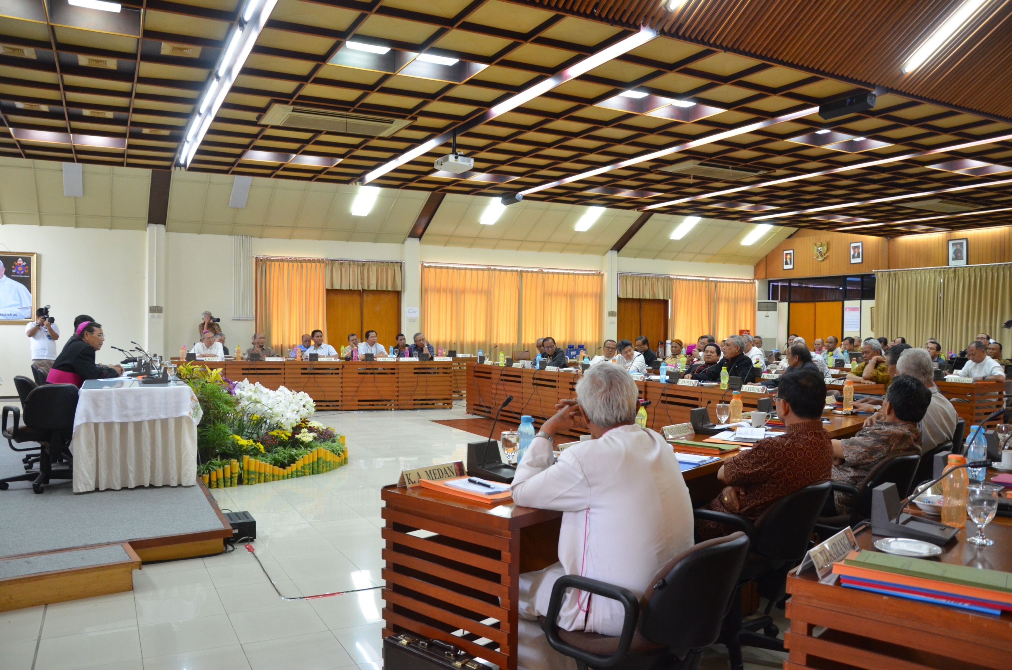 SIDANG Tahunan KWI yang dibuka Senin (31/10) di Aula KWI, Jalan Cut Meutia, Jakarta Pusat dimulai dengan hari-hari studi untuk para Uskup. Tema hari studi bagi para Uskup ini setiap tahunnya berubah sesuai dengan keprihatinan para Uskup terhadap situasi yang berkembang di Indonesia. Dalam Sidang Tahunan 2016 kali ini tema hari studi yang dipilih adalah “Membedah dan Mencegah Mentalitas Koruptif Serta Perilaku Koruptif.”