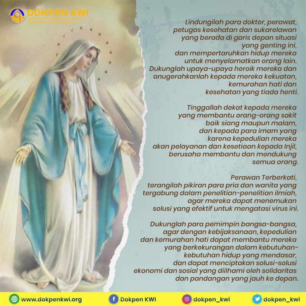 Bulan Mei hampir tiba, bulan di mana Umat Allah mengungkapkan dengan intensitas istimewa kasih dan devosi mereka kepada Perawan Maria Terberkati. Telah merupakan suatu tradisi di bulan ini untuk mendoakan Rosario di rumah bersama-sama dengan keluarga. Pembatasan-pembatasan yang diakibatkan oleh pandemi ini menjadikan kita terlebih lagi menghargai aspek “keluarga” ini, juga dari sudut pandang rohani.
